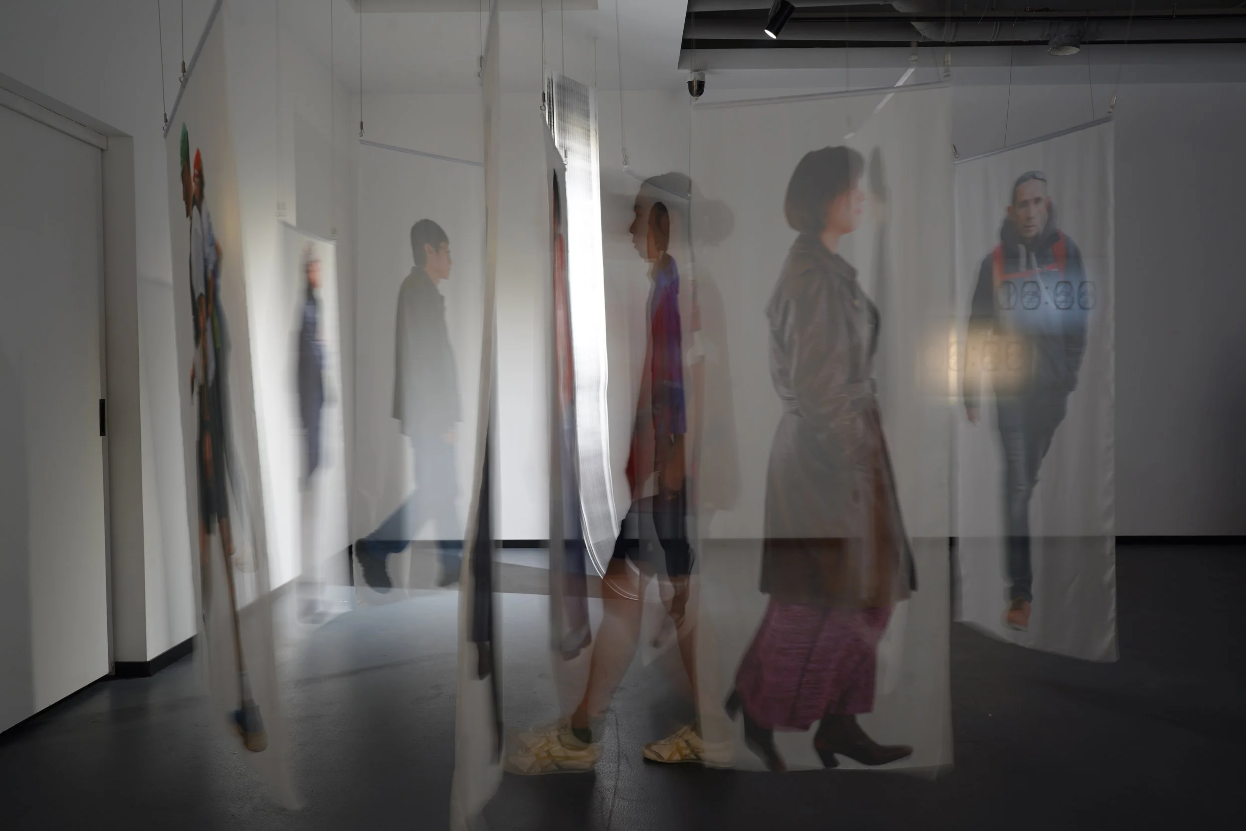 泽诚作品的真正媒介其实是风——风在人群中穿梭,携带着他们的味道,奔赴下一个人。不同的人、时间和空间就这样在风中交织了。Come by the wind - Across这件作品试图捕捉这种稍纵即逝的相遇,物理上的相遇,比喻意义上的相遇。作品中有陌生人,有朋友,有恋人。随着时间流逝,里面有些人际关系也发生了改变,而在展览中,观者在作品之间游走,又产生新的相遇。这件作品构建出一个小小的集合场域,它来自另一个时间和空间,又向新的时间和空间无限敞开。