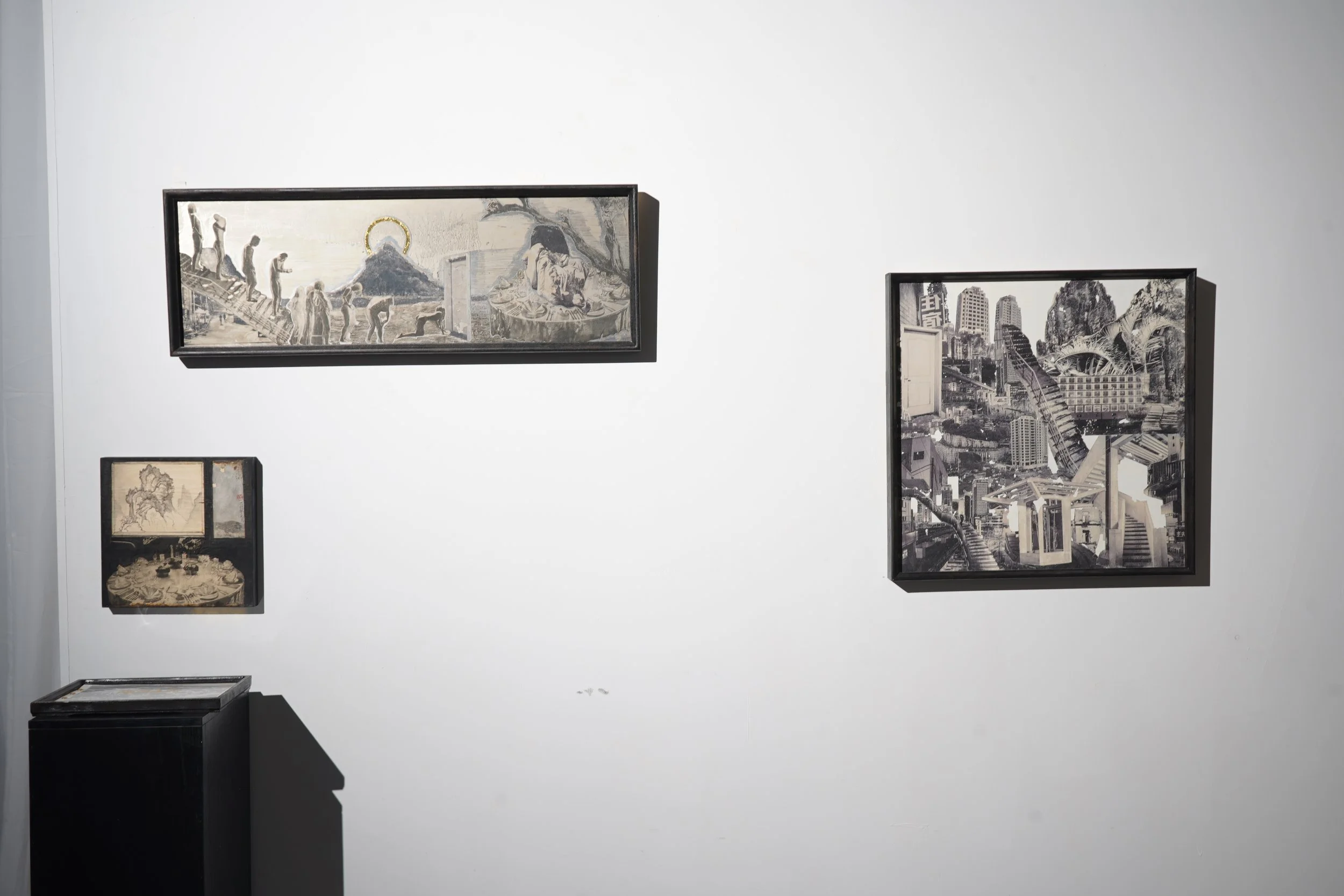 王雪翰近期的创作围绕拼贴展开,在此之前,他也有过一段沉浸于直接摄影的阶段,这为他后期的拼贴提供了大量的素材。他将照片拆解到他所认为的基本单元,比如门、椅子、自行车、床,这些他作品中最常见的几种素材,再将它们重新进行组合。和直接摄影相比,这样的图像更加多义,它可以容纳不同的视角、时间和空间。画面的中心不再是拍摄对象,而是拍摄对象与另一个拍摄对象交界的地方,在那里有大量的运动产生,观者的眼睛也随之运动,仿佛在不同的时空之间横跳。同时,这种松动的画面取消了时间的线性逻辑,为叙事提供了自由。事件不再依次发生,在画面与画面的边界处,它们之间的因果关系成为一种可供想象的东西。